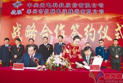 3月28日上午,市航聯(lián)電連接器有限公司與中兵光電股份有限公司簽署戰(zhàn)略合作協(xié)議,航聯(lián)將通過掛靠上市公司,加快發(fā)展步伐。 市領導張兆江、孫云、王中先、楊晉安、吳斌、薛晨光,中兵光電股份有限公司董事長李保平,以及部分軍隊代表參加了簽約儀式。 中兵光電科技股份有限公司是中國兵器集團重點保軍企業(yè),以“信息化與精確打擊”為核心業(yè)務,是中國兵器集團發(fā)展最快的上市公司,目前市值超百億元。航聯(lián)電連接器有限公司是我市一家民營成長型企業(yè),主產(chǎn)品電連接器通過了部隊質(zhì)量體系認證,在軍品市場得到廣泛應用。這次戰(zhàn)略合作,中兵光電股份有限公司注資購買航聯(lián)51%的股份,同時,雙方將在資金、管理、產(chǎn)品技術和新項目上開展深度合作,合力將航聯(lián)電連接器迅速做大做強,并將謀求向兵器行業(yè)其它產(chǎn)品擴張。中兵光電股份有限公司董事長李保平表示,簽約后,中兵光電將繼續(xù)加大資金投入和項目開發(fā)力度,力求將航聯(lián)建設成為中兵光電在泰興較大規(guī)模的生產(chǎn)基地。 市委書記張兆江在致辭中說,這一次的成功合作,中兵光電大型軍企品牌的影響力,將對航聯(lián)今后的發(fā)展壯大產(chǎn)生帶動力。希望雙方積極創(chuàng)新合作模式、拓寬合作領域,讓航聯(lián)通過借船出海,走上技術高端化、生產(chǎn)集約化、管理現(xiàn)代化的發(fā)展之路,努力成為國內(nèi)外電連接行業(yè)中最具影響力的優(yōu)秀企業(yè)。泰興市委、市政府及相關部門將盡力提供更大的支持和更優(yōu)的服務,使雙方的合作之路越走越寬,實現(xiàn)互利雙贏。 |
