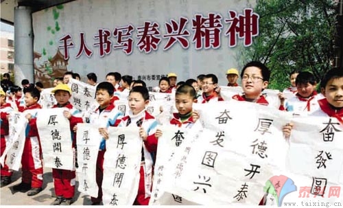 為進(jìn)一步提高新時期泰興精神的知曉率、認(rèn)同度,4月24日上午,我市舉行千人書寫“泰興精神”活動,市領(lǐng)導(dǎo)戴仁泉、王中先、楊晉安、張春山出席。 在鼓樓文化廣場,1000多名小學(xué)生現(xiàn)場揮毫,書寫“厚德開泰 、奮發(fā)圖興”的新時期泰興精神。 市委常委、宣傳部部長戴仁泉指出,這次活動是全市深入開展泰興精神宣傳實踐活動的一個具體行動,他希望參與活動的學(xué)生們充分發(fā)揮“小手拉大手”的作用,推動泰興精神的學(xué)習(xí)、宣傳、實踐,進(jìn)家庭、進(jìn)校園、進(jìn)社區(qū),進(jìn)而在全社會形成弘揚、踐行泰興精神的濃厚氛圍。 在一張張白紙上,孩子們寫下了各種書法字體的“厚德開泰、奮發(fā)圖興”,字里行間滲透著孩子們對泰興精神的理解,對家鄉(xiāng)的熱愛。 |