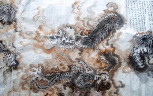 (記者 蔣凱 通訊員 陳慶生)家住黃橋鎮(zhèn)的八旬老人丁志誠從未接受過專業(yè)培訓,退休后堅持自學畫畫。去年9月份,老人開始創(chuàng)作工筆畫《九龍圖》,每天畫2個小時,堅持了3個月。去年12月份,這幅畫終于面世了。 三個月完成《九龍圖》 記者在丁志誠老人家看到,這幅《九龍圖》長7.2米,寬0.7米。長卷上共畫有9條姿態(tài)各異的龍,有的張牙舞爪,有的在云層中半隱半現,有的騰躍海洋,有的駕云吐雨。 “我畫的9條龍都沒有展現全身,主要表現的是龍的精氣神。”丁志誠說,“今年是龍年,去年9月份,我開始創(chuàng)作這幅《九龍圖》,現在終于完成了,用它來迎新年、賀新春。” 這幅長卷凝聚了老人太多的心血。老人平時看了很多關于龍的畫,因此不用臨摹,各種龍的形象已印在他的腦海里。他每天泡在書房畫龍,至少2個小時,多則3個小時,整整堅持了3個月。 《九龍圖》畫好后,親朋好友、街坊鄰居都來欣賞。“80歲還能畫出這樣漂亮的畫,真是不簡單。”鄰居們一邊看,一邊稱贊。