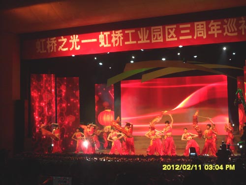整場演出以展現(xiàn)虹橋工業(yè)園區(qū)發(fā)展為主線,星光璀璨,高潮迭起。央視《星光大道》2010年最佳市場組合獲得者——莫斯科女孩組合帶來了《紅梅花兒開》、《莫斯科郊外的晚上》兩首歡快的青春舞曲;同樣是《星光大道》走出來的知名青年歌唱演員陸海濤,將模仿秀這一現(xiàn)代表演形式演繹到了極致。海政文工團(tuán)青年歌唱演員孫佳、湯俊在現(xiàn)場演繹了《美麗的心情》、《母親》等一首首耳熟能詳?shù)慕?jīng)典曲目;著名相聲演員賈玲、劉濤帶來的相聲《大嫁光臨》與現(xiàn)場觀眾精彩互動;南京市歌舞劇院帶來的女子舞蹈《豐收時節(jié)》預(yù)示著虹橋工業(yè)園區(qū)龍年再創(chuàng)新輝煌;著名歌手林萍帶來的《為今天喝彩》以及著名男中音歌唱家劉秉義演唱的《咱們工人有力量》將演出推向了高潮。 演出過程中,泰州市領(lǐng)導(dǎo)以及我市領(lǐng)導(dǎo)為虹橋工業(yè)園區(qū)發(fā)展的“最佳貢獻(xiàn)獎”、“最佳服務(wù)獎”和“最佳奉獻(xiàn)獎”獲得者頒獎。
