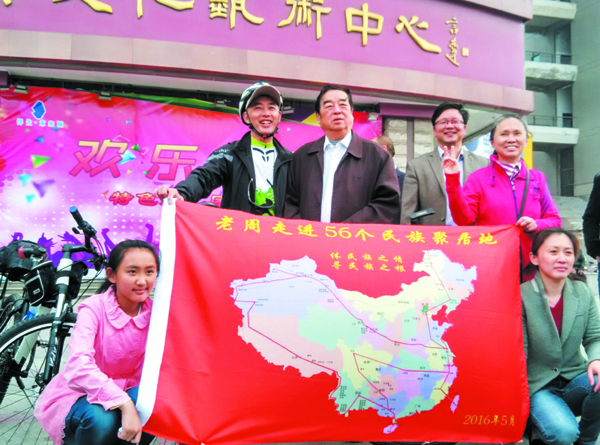 ![]() 在家含飴弄孫,或是種花養(yǎng)鳥,或是鍛煉身體,這是很多人退休后的理想生活。家住城區(qū)的周榮成卻愛“折騰”,退休后愛上了騎單車,2013年成功騎行川藏線,2015年重走紅軍長(zhǎng)征路。5月14日,他又騎單車出發(fā)了,目標(biāo)是走進(jìn)我國(guó)五十多個(gè)民族聚居地。 退休后愛上了騎單車