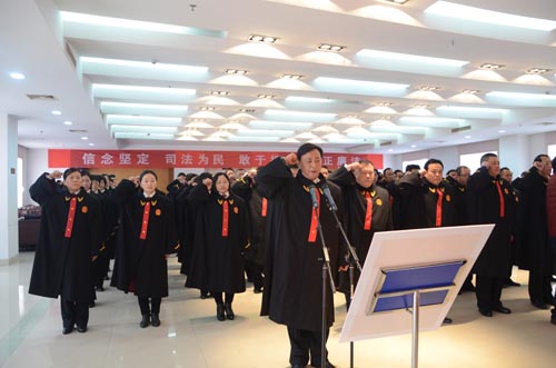 。ㄓ浾 祝朝暉)元月3日,泰興市人民法院舉行入額法官憲法宣誓儀式。在院黨組書記、院長(zhǎng)楊旭波的帶領(lǐng)下,全體入額法官面向國(guó)旗莊嚴(yán)地舉起右拳,用錚錚誓言做出人民法官的莊嚴(yán)承諾。 該院自司法改革法官入額工作啟動(dòng)以來(lái),經(jīng)過報(bào)名、資格審查、考核、考察、審議、公示等程序,嚴(yán)格遴選入額法官,最終經(jīng)省高院確定該院62名具有較高的法律素養(yǎng)、審判工作經(jīng)驗(yàn)和履職能力較強(qiáng)的法官首批入額。