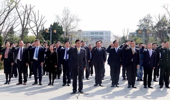 ![]() 楊根思烈士陵園內(nèi),青松翠柏挺拔,氣氛莊嚴(yán)肅穆。走進(jìn)烈士陵園,張育林、張坤等市委領(lǐng)導(dǎo)班子全體黨員一起深情瞻仰了楊根思烈士雕像、衣冠冢。在烈士雕像前,大家敬獻(xiàn)花籃,表達(dá)對先烈的無限懷念和敬意。面對鮮紅黨旗,張育林帶領(lǐng)大家莊嚴(yán)宣誓,重溫入黨誓詞。 ![]() 隨后,張育林、張坤等市委領(lǐng)導(dǎo)班子成員接受了“我是誰”主題黨課教育。通過現(xiàn)場教學(xué),大家了解無數(shù)革命先烈為中國革命勝利作出的巨大犧牲,通過“榜樣的力量”,進(jìn)一步把握了“三個(gè)不相信”的精神實(shí)質(zhì)。 大家表示,將在“三個(gè)不相信”精神的引領(lǐng)下,進(jìn)一步增強(qiáng)奉獻(xiàn)意識、責(zé)任意識,以實(shí)際行動繼承先烈遺志,為“聚力創(chuàng)新快轉(zhuǎn)型、聚焦富民奔小康、爭當(dāng)蘇中排頭兵”作出新的更大的貢獻(xiàn)。 |
