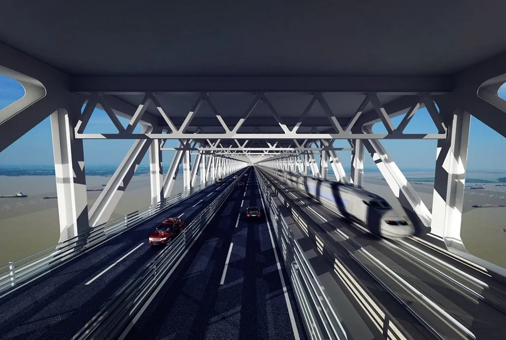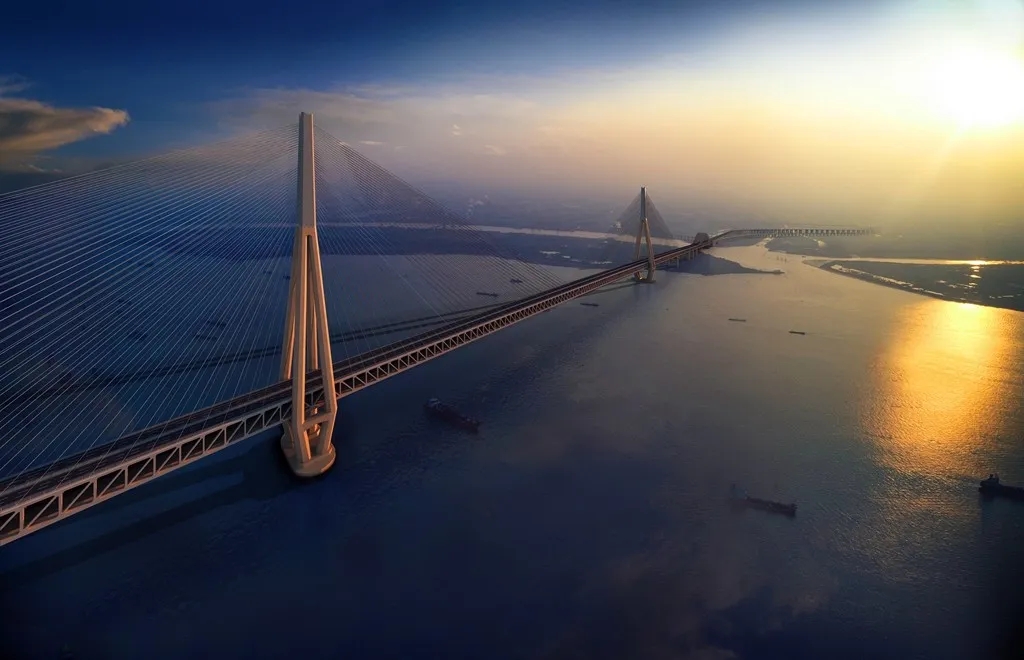 常泰長江大橋項目總投資144.56億元,預計2024年建成通車,大橋建成后將創(chuàng)下三個“世界第一”,世界上首座“一橋三用”的過江通道,上層6車道高速公路,下層城際鐵路+一級公路,主橋將成為世界上最大跨度的公鐵兩用斜拉橋,兩側的兩座拱橋也將成為世界上最大跨度的公鐵兩用鋼拱橋。