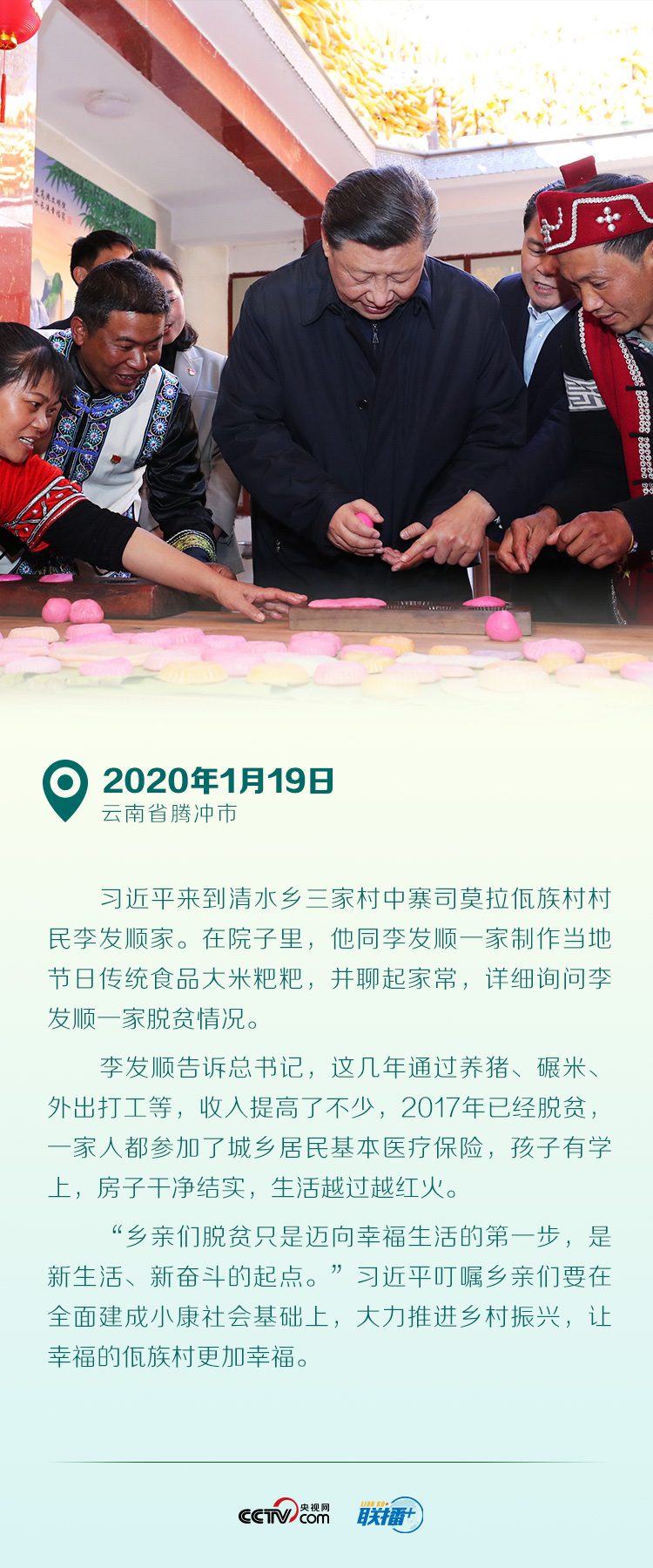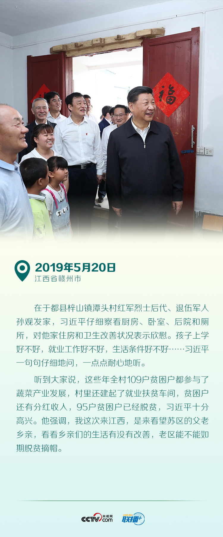 “當(dāng)前,脫貧攻堅已經(jīng)到了決戰(zhàn)決勝的關(guān)鍵時期,越到緊要關(guān)頭越要堅定信心、真抓實干。” 近日,在對毛南族實現(xiàn)整族脫貧作出的重要指示中,習(xí)近平總書記強(qiáng)調(diào):確保高質(zhì)量完成脫貧攻堅目標(biāo)任務(wù),奮力奪取脫貧攻堅戰(zhàn)全面勝利。 猶記得2019年全國兩會期間,習(xí)近平在參加甘肅代表團(tuán)審議時強(qiáng)調(diào):“今后兩年脫貧攻堅任務(wù)仍然艱巨繁重,剩下的都是貧中之貧、困中之困,都是難啃的硬骨頭。” 一年來,為確保脫貧攻堅任務(wù)如期完成,習(xí)近平先后赴重慶、江西、內(nèi)蒙古等省區(qū)市考察調(diào)研,同貧困群眾一起拉家常、算收支、想辦法…… 特別是新冠肺炎疫情發(fā)生后,習(xí)近平結(jié)合實際情況,對打贏脫貧攻堅戰(zhàn)再部署、再動員。他深入田間地頭看產(chǎn)業(yè)發(fā)展、走進(jìn)社區(qū)家庭傾聽百姓心聲,引領(lǐng)人民增強(qiáng)脫貧致富的內(nèi)生動力,完善“造血”能力,鞏固脫貧成果,確保脫貧質(zhì)量。 如今,全面建成小康社會迎來收官之年,全國兩會召開在即,央視網(wǎng)《聯(lián)播+》特梳理習(xí)近平去年兩會以來的扶貧足跡,講述這一年間總書記一心為民的扶貧故事。