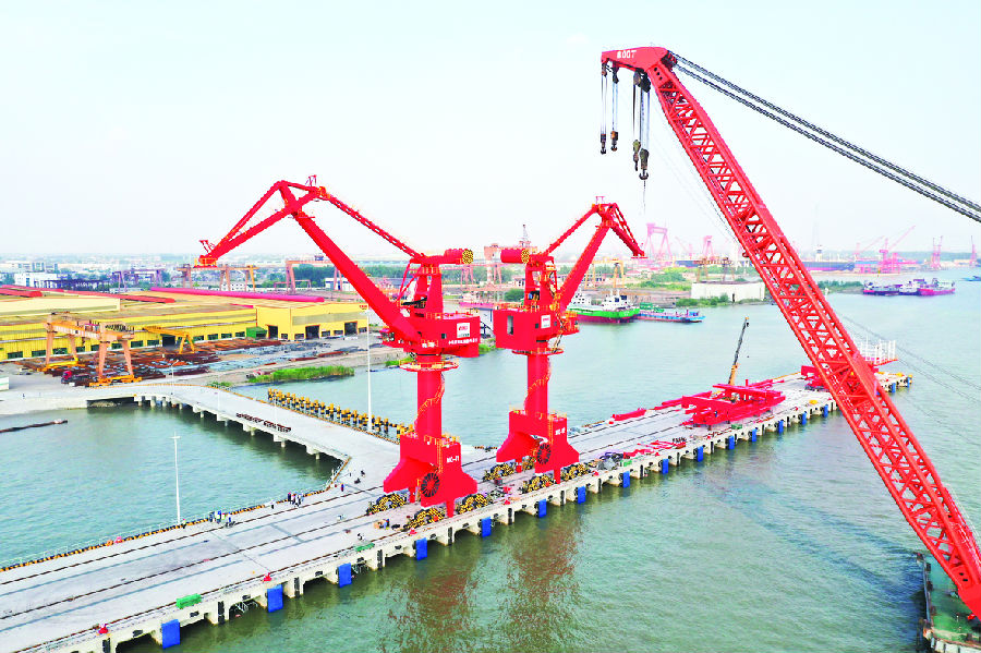 6月4日,由中鐵建港航局泰興港務(wù)有限公司投資建設(shè)運(yùn)營的泰興港區(qū)七圩公用碼頭門機(jī)設(shè)備安裝圓滿完成,碼頭現(xiàn)場亮出紅色風(fēng)景線。該碼頭作為中國鐵建首個(gè)自主建設(shè)運(yùn)營的碼頭,開港運(yùn)營后將充分發(fā)揮中國鐵建品牌優(yōu)勢,融入“長江經(jīng)濟(jì)帶”及“長三角經(jīng)濟(jì)圈”國家戰(zhàn)略,整合長三角特別是錫常泰貨物資源,實(shí)現(xiàn)江海大聯(lián)運(yùn),讓黃金岸線在保護(hù)性開發(fā)中實(shí)現(xiàn)“黃金效益”,助力地方經(jīng)濟(jì)跨越發(fā)展。 |