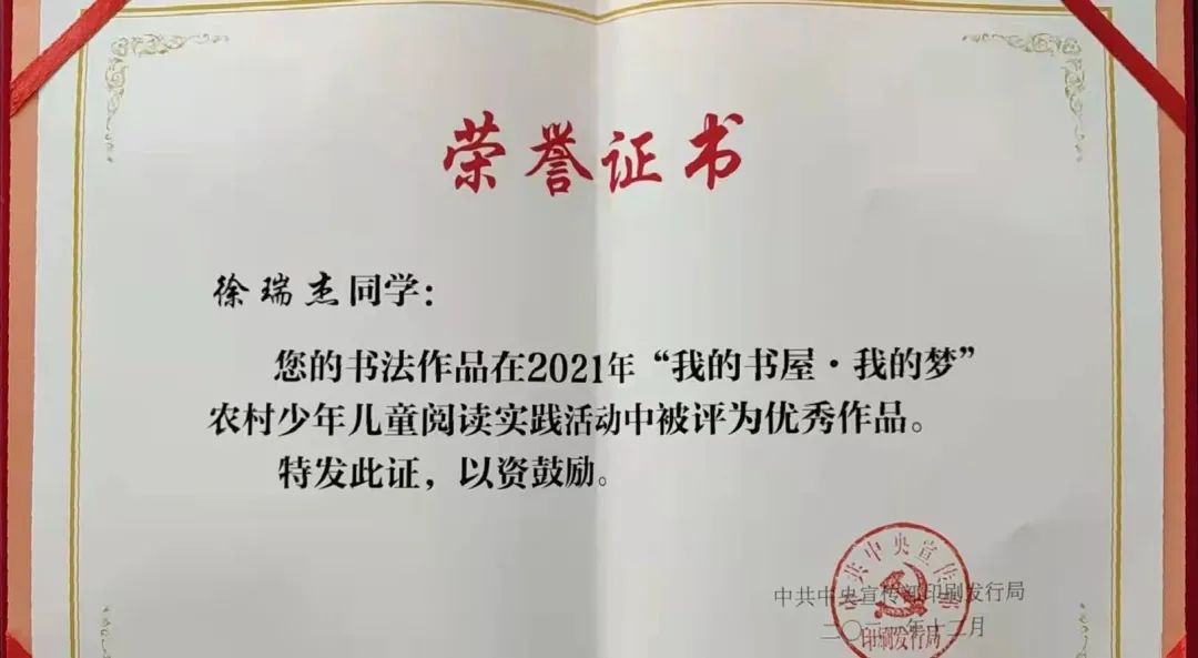 日前 中宣部2021年“我的書屋·我的夢” 農(nóng)村少年兒童閱讀實踐活動 優(yōu)秀作品名單公布 泰興市東街小學(xué) 徐瑞杰的篆刻作品 以泰州唯一、江蘇22名的優(yōu)異成績 位列其中