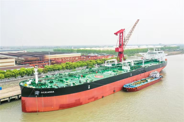 (圖為16.3萬噸油輪交付現(xiàn)場) 在嚴(yán)格落實(shí)疫情防控措施的前提下,靖江市積極幫助新時代造船、新?lián)P子造船等企業(yè)辦理外籍人士來靖申請,解決了企業(yè)的燃眉之急。靖江海關(guān)在加工貿(mào)易手冊備案、延期、核銷等方面提供政策支持,進(jìn)口通關(guān)環(huán)節(jié)應(yīng)用“提前申報”,疊加“兩步申報”,全程實(shí)現(xiàn)電子化,提高通關(guān)效率。“在海關(guān)的指導(dǎo)幫助下,我們的一批船舶備件通過靖江保稅物流中心(B型)報關(guān),成功發(fā)貨至企業(yè),保證了后續(xù)的生產(chǎn)。”新時代造船物資部副部長毛建告訴記者。通過推廣使用“互聯(lián)網(wǎng)+”和目的地查驗(yàn)新模式,靖江海關(guān)實(shí)現(xiàn)造船原料“即到、即驗(yàn)、即放”,為企業(yè)新船出口提速加碼。南京海關(guān)所屬靖江海關(guān)副關(guān)長楊強(qiáng)介紹,今年以來,靖江地區(qū)造船企業(yè)已經(jīng)順利交付出口船舶18艘,與去年同期相比增長12.5%。