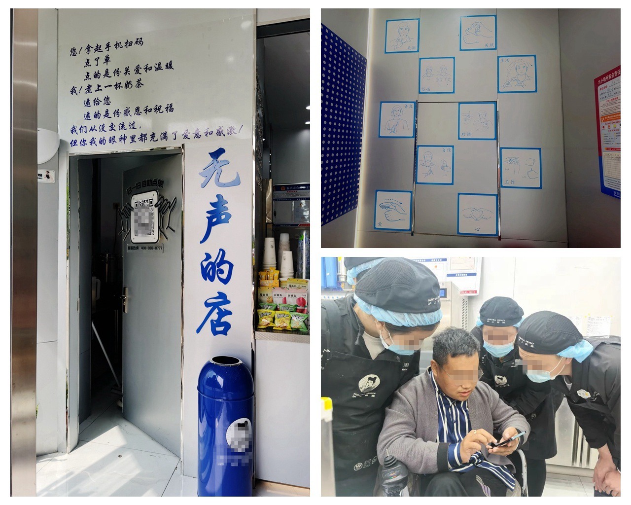 “無聲的店”老板鞠葉也是一名殘疾人,14歲時(shí)患上強(qiáng)直性脊柱炎,坐在輪椅上近25年。他在店內(nèi),加入了一些暖心的設(shè)計(jì),計(jì)時(shí)震動(dòng)、等候區(qū)、充電區(qū)、手語墻、溫馨小標(biāo)語、小店故事等。每天,他都要來店里看看,看看有沒有什么困難。當(dāng)遇到顧客不滿意的時(shí)候,鞠葉會(huì)鼓勵(lì)伙伴,賠一杯奶茶不是什么大事,不要覺得自己做得不好。“去年,參加特殊學(xué)校關(guān)愛活動(dòng)時(shí),了解了聽障孩子們情況,就萌生出要為他們做點(diǎn)事的想法。”鞠葉的這種想法,得到了泰興市殘聯(lián)的支持,也得到了奶茶品牌方上?偛康恼邇(yōu)惠。于是,在一群正能量滿滿的愛心企業(yè)、人士的幫助下,“無聲的店”正式開張了。