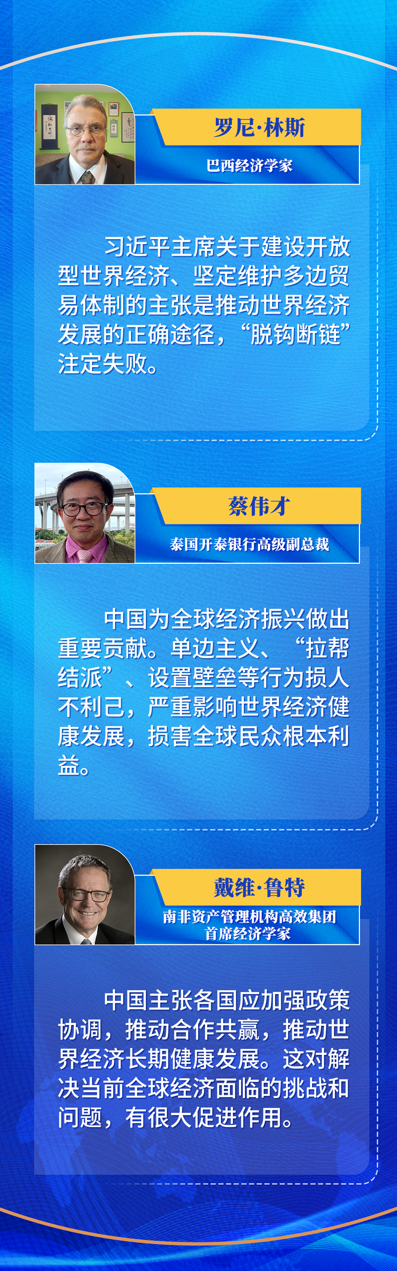 展望疫情后的世界,世界經(jīng)濟(jì)論壇常務(wù)董事薩迪亞·扎希迪有些憂心忡忡:疫情和地緣政治沖突將對世界經(jīng)濟(jì)造成深遠(yuǎn)影響,可能使過去多年的努力成果損失殆盡。 “如何建設(shè)疫后世界?”習(xí)近平主席在2022年世界經(jīng)濟(jì)論壇視頻會議上的發(fā)問,道出各國人民的共同關(guān)切。 擺脫疫情陰霾、合力走出危機(jī)、實(shí)現(xiàn)經(jīng)濟(jì)復(fù)蘇是各國人民的普遍心聲。然而,世界范圍內(nèi)“脫鉤”“斷鏈”的噪音、雜音依然不絕于耳。那些以鄰為壑、搞零和博弈者,打造“小院高墻”“平行體系”者,搞封閉排他的“小圈子”者,掣肘世界經(jīng)濟(jì)復(fù)蘇,讓經(jīng)濟(jì)全球化遭遇逆流、險灘。 經(jīng)濟(jì)全球化何去何從?習(xí)近平主席在達(dá)沃斯論壇上作出明確回答:“世界經(jīng)濟(jì)的大海,你要還是不要,都在那兒,是回避不了的。想人為切斷各國經(jīng)濟(jì)的資金流、技術(shù)流、產(chǎn)品流、產(chǎn)業(yè)流、人員流,讓世界經(jīng)濟(jì)的大海退回到一個一個孤立的小湖泊、小河流,是不可能的,也是不符合歷史潮流的。” 2022年1月,習(xí)近平主席在2022年世界經(jīng)濟(jì)論壇視頻會議上再次強(qiáng)調(diào):“經(jīng)濟(jì)全球化是時代潮流。大江奔騰向海,總會遇到逆流,但任何逆流都阻擋不了大江東去。動力助其前行,阻力促其強(qiáng)大。” “大海”“大江”,浩浩蕩蕩。和平、發(fā)展、合作、共贏的世界大勢,不可阻逆。 堅(jiān)持拆墻而不筑墻、開放而不隔絕、融合而不脫鉤,推動構(gòu)建開放型世界經(jīng)濟(jì),才能將世界經(jīng)濟(jì)帶出低谷。 大道至簡,實(shí)干為要。無論是服貿(mào)會、廣交會,還是消博會、進(jìn)博會,場場人氣滿滿、佳績連連,中國主動與世界分享發(fā)展機(jī)遇,“投資中國就是投資未來”已成為普遍共識。外資準(zhǔn)入負(fù)面清單持續(xù)縮減,海南自貿(mào)港揚(yáng)帆起航,陸海新通道加快推進(jìn),內(nèi)外聯(lián)動、東西互濟(jì)的全面開放新格局正在形成。從亞洲到歐洲,從非洲到拉美,中國“一帶一路”項(xiàng)目高質(zhì)量發(fā)展不斷取得新成效,惠及各國民眾。 “始終支持經(jīng)濟(jì)全球化”“堅(jiān)定實(shí)施對外開放基本國策”“推進(jìn)高質(zhì)量共建‘一帶一路’”“進(jìn)一步融入?yún)^(qū)域和世界經(jīng)濟(jì),努力實(shí)現(xiàn)互利共贏”——習(xí)近平主席反復(fù)宣示,開放的中國,始終以自身新發(fā)展為世界提供新機(jī)遇,始終站在歷史正確的一邊。