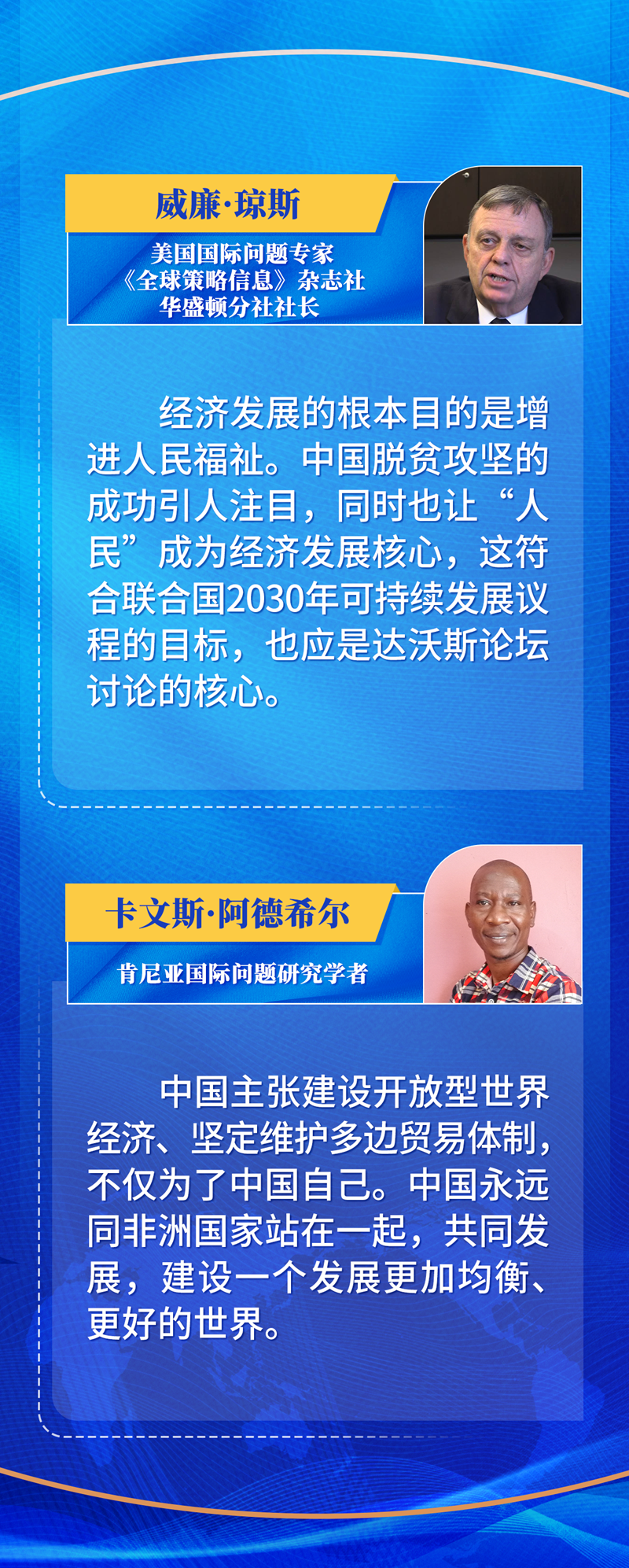 當(dāng)今世界,兩種場景同時上演:一邊是糧食和能源價格上漲,加速“出產(chǎn)”億萬富豪,資源和財(cái)富繼續(xù)向少數(shù)人集中;另一邊則是全球人類發(fā)展指數(shù)連續(xù)兩年下降,數(shù)億人遭遇饑餓、貧困等生存危機(jī)。聯(lián)合國秘書長古特雷斯感嘆:人類正日益分裂。 南北鴻溝繼續(xù)拉大,發(fā)展斷層、技術(shù)鴻溝等問題更加突出,越來越多的人開始思考:世界需要什么樣的發(fā)展? “大道之行也,天下為公。”習(xí)近平主席2017年在達(dá)沃斯論壇年會上強(qiáng)調(diào),要讓發(fā)展更加平衡,讓發(fā)展機(jī)會更加均等、發(fā)展成果人人共享,就要完善發(fā)展理念和模式,提升發(fā)展的公平性、有效性、協(xié)同性。 2021年9月,習(xí)近平主席在第76屆聯(lián)合國大會一般性辯論上提出全球發(fā)展倡議,呼吁國際社會關(guān)注發(fā)展中國家面臨的緊迫問題。全球發(fā)展倡議,堅(jiān)持發(fā)展優(yōu)先,堅(jiān)持以人民為中心,堅(jiān)持普惠包容,堅(jiān)持創(chuàng)新驅(qū)動,堅(jiān)持人與自然和諧共生,堅(jiān)持行動導(dǎo)向。這是中國推動構(gòu)建人類命運(yùn)共同體的又一生動實(shí)踐,為破解發(fā)展難題貢獻(xiàn)了中國智慧和中國方案。 “各國一起發(fā)展才是真發(fā)展,大家共同富裕才是真富裕。”“只有解決好發(fā)展不平衡問題,才能夠?yàn)槿祟惞餐l(fā)展開辟更加廣闊的前景。” 謀度于義者必得,事因于民者必成。全球發(fā)展倡議,得到國際社會熱烈響應(yīng)。聯(lián)合國秘書長古特雷斯說,這一倡議正當(dāng)其時,聯(lián)合國予以明確支持并愿與中國就此開展合作,同各國一道推進(jìn)落實(shí)。目前,已有100多個國家和多個國際組織支持倡議,近70個國家加入“全球發(fā)展倡議之友小組”,全球共謀發(fā)展的力量在不斷壯大。 “我們是同處一個星球的人類命運(yùn)共同體。”世界經(jīng)濟(jì)論壇創(chuàng)始人克勞斯·施瓦布在其思考疫后時代走向的著作中這樣寫道。 “我們今天所作的每一個抉擇、采取的每一項(xiàng)行動,都將決定世界的未來。”一次次深刻闡述,一次次真誠呼吁,習(xí)近平主席在達(dá)沃斯論壇發(fā)出的聲音穿越時空,為解決人類面臨的共同問題貢獻(xiàn)智慧與力量,為變亂交織的世界提供寶貴的確定性和穩(wěn)定性。新時代中國將與世界上一切進(jìn)步力量一道,堅(jiān)定維護(hù)和踐行多邊主義,向著構(gòu)建人類命運(yùn)共同體的正確方向,讓和平與發(fā)展的陽光普照大地,攜手開創(chuàng)更加美好的未來。