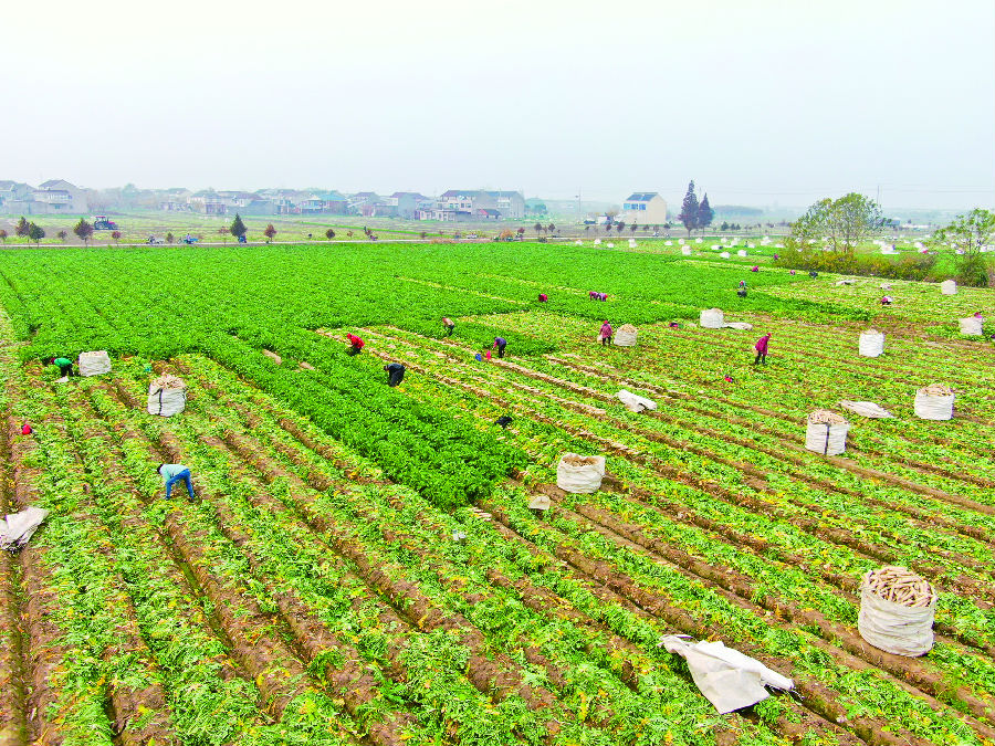 近日,在根思鄉(xiāng)興許村田頭,村民們正在收獲成熟的白蘿卜,采收、切葉、分揀、裝袋、搬運(yùn),一排排優(yōu)質(zhì)紅白蘿卜整整齊齊碼放在田邊,同時(shí)卡車加緊裝載蘿卜,準(zhǔn)備運(yùn)輸?shù)胶戏、浙江等地的集散倉庫,隨后銷往全國各地。 云秀家庭農(nóng)場業(yè)主孫云秀表示:“在興許村這邊我大概種了400多畝田,長美蘿卜比普通的蘿卜產(chǎn)量要高一些,它的特點(diǎn)就是皮色很好看,個(gè)頭也很大。長的可能達(dá)到70公分,它的效益比較好,口感也很好。”孫云秀利用蘿卜生長周期比較短的特性,在秋收結(jié)束后,立即種植1000多畝的長美蘿卜,從種植到收獲只有3個(gè)月的時(shí)間。等蘿卜收貨后,她再次種植晚小麥,實(shí)現(xiàn)輪茬種植“一地三收”的種植效果。 孫云秀還告訴記者,雖然今年產(chǎn)量比往年稍微低了一些,但是價(jià)格還不錯(cuò),每天會有四五十個(gè)工人在農(nóng)場工作,效益還是持平的。“在家里閑著也是閑著,沒什么事我就過來打打工,拔拔蘿卜,一天出點(diǎn)勁也能賺到百十塊錢,賺一點(diǎn)生活費(fèi)。”在云秀家庭農(nóng)場工作的村民常永貴笑著說道。 除了家庭農(nóng)場的豐收景象,根思鄉(xiāng)鞠莊村業(yè)主徐友貴蟹塘里的螃蟹也已銷售一空,這幾天正逐步排水捕捉塘內(nèi)的魚蝦。徐友貴告訴記者,螃蟹的品質(zhì)好不好,水是關(guān)鍵。利用冬閑,蟹塘的“冬翻”修整期至關(guān)重要。“現(xiàn)在天天就忙著清塘、修整、種草,要把整個(gè)塘都曬好了、水弄清了,水菜種子收起來以后,留著下年種。” 冬季是蔬菜供應(yīng)的淡季,而韭菜又具有較高營養(yǎng)價(jià)值,深受收購商和老百姓的歡迎。為了保障韭菜四季供應(yīng)不間斷,鞠莊村在做好室外田地內(nèi)韭菜收割和保溫的基礎(chǔ)上,還在田地間布置了8個(gè)保溫拱棚,安裝定時(shí)噴淋系統(tǒng),專人定時(shí)查看韭菜的漲勢以及棚內(nèi)溫度,確保韭菜冬季正常生長。 種植戶鞠國華告訴記者:“韭菜是不抗凍的,冬天大棚要搭好,做好保溫,里面還有噴水設(shè)備保證它的濕度。我們的韭菜今年行情還行,割掉一茬,沒有多久,還要繼續(xù)割。” 根思鄉(xiāng)不斷優(yōu)化農(nóng)業(yè)產(chǎn)業(yè)結(jié)構(gòu),大力發(fā)展特色種植和設(shè)施農(nóng)業(yè),引導(dǎo)農(nóng)民種植大棚瓜果、蔬菜、花卉等農(nóng)副產(chǎn)品,多元化為農(nóng)民拓寬產(chǎn)業(yè)路徑,讓“春種秋收”變“四季豐收”“冬閑”變“冬忙”,促使集體和群眾增收不斷鏈。