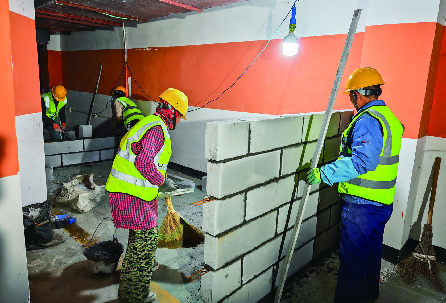 為筑牢住宅小區(qū)安全“防火墻”,今年年初,市住建局、市集建公司啟動了城區(qū)居民住宅小區(qū)地下非機動車停車庫改造項目,對寶格麗,金科集美雅苑,皇家水岸2期、4期,佳源威尼斯·西岱宮、凱旋宮、波旁宮,恒大悅府,金鳳商城等13個小區(qū)、40個地下非機動車停車庫進行改造。在砌筑防火隔墻的同時,還將施劃地面停車標線,規(guī)范車輛停放秩序。圖為錦繡華府小區(qū)地下非機動車停車庫,施工人員正在砌筑防火隔墻。