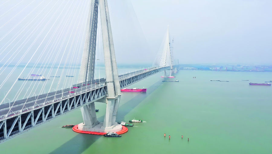為大橋穿上會(huì)呼吸的“鎧甲”——常泰長(zhǎng)江大橋跨江段防撞設(shè)施全部安裝完成