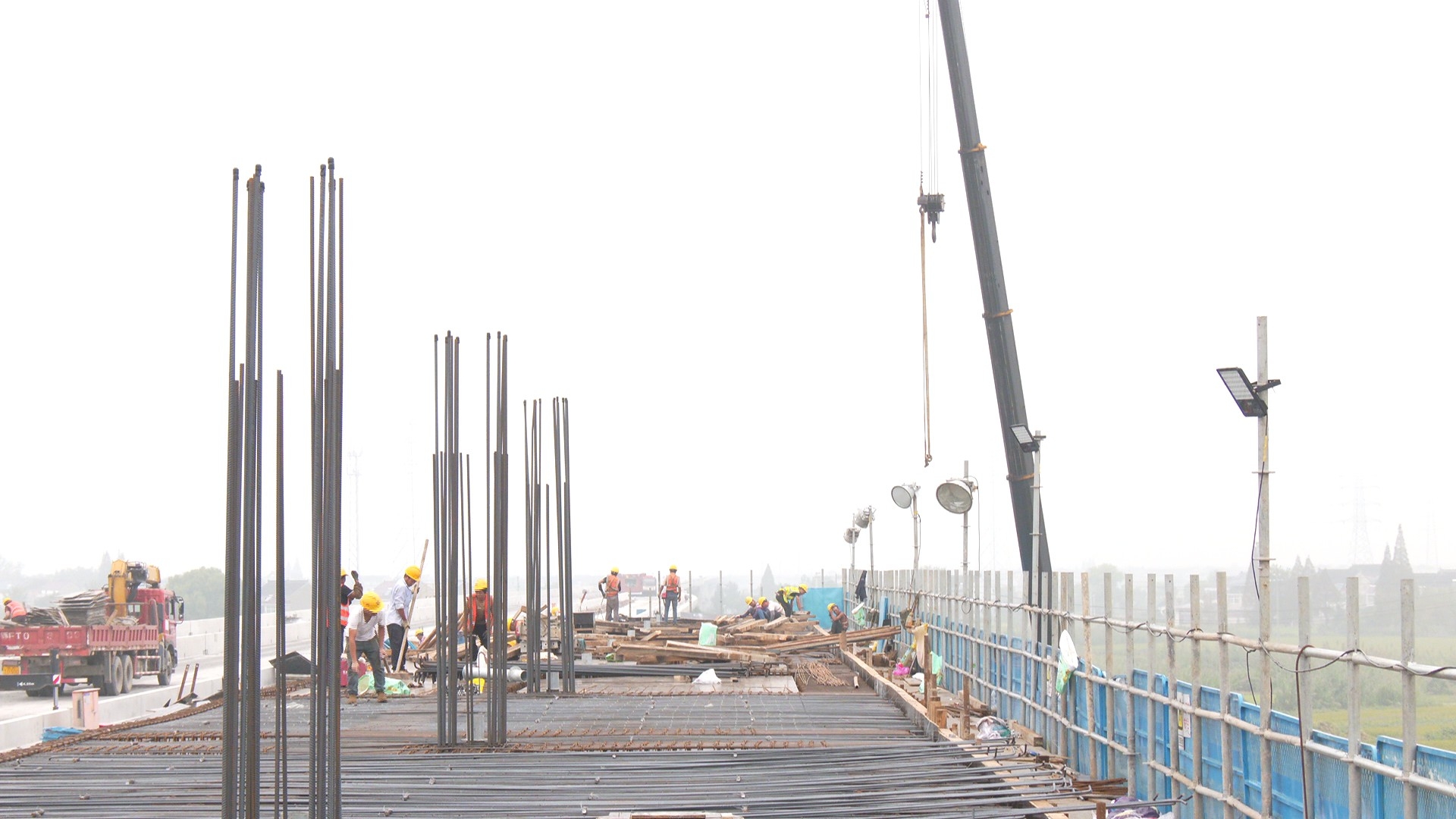 國(guó)慶中秋雙節(jié)期間,當(dāng)人們沉浸在假期團(tuán)圓與休閑氛圍中時(shí),滬渝蓉高鐵泰興段的建設(shè)現(xiàn)場(chǎng)依舊熱潮涌動(dòng)。500多名施工人員放棄休假、堅(jiān)守崗位,全力加快箱梁架設(shè)、黃橋站站臺(tái)梁及附屬工程施工進(jìn)度,以實(shí)干確保項(xiàng)目按計(jì)劃推進(jìn)、如期完工。 10月6日上午,在滬渝蓉高鐵中鐵十一局站前九標(biāo)黃橋站項(xiàng)目現(xiàn)場(chǎng),施工景象繁忙有序。高鐵主線、到發(fā)3線、到發(fā)4線已順利完成箱梁架設(shè),施工人員正專注進(jìn)行站臺(tái)梁、板、柱的鋼筋模板安裝作業(yè),為后續(xù)混凝土澆筑等工序筑牢基礎(chǔ)。據(jù)了解,黃橋站選址于黃橋鎮(zhèn)野屋村,設(shè)計(jì)規(guī)模包含2座站臺(tái)、2條走行線及2條到發(fā)線,其中站臺(tái)長(zhǎng)度達(dá)450米、寬度8米。 “黃橋站站臺(tái)梁計(jì)劃在2025年12月15日前完成所有混凝土澆筑施工,后續(xù)還將依次推進(jìn)雨棚柱混凝土澆筑、雨棚安裝、兩側(cè)玻璃欄桿安裝以及地面瓷磚鋪貼等工作。”滬渝蓉高鐵黃橋站技術(shù)總工張永林詳細(xì)介紹了站臺(tái)施工的節(jié)點(diǎn)規(guī)劃與后續(xù)安排。 作為國(guó)家“八縱八橫”高鐵骨干通道的重要組成部分,滬渝蓉高鐵總長(zhǎng)約2100公里,設(shè)計(jì)時(shí)速350公里,其中泰興段全長(zhǎng)約28公里,途經(jīng)分界、黃橋、古溪、元竹、新街五鎮(zhèn),并專門(mén)設(shè)置黃橋車站。在各參建單位的科學(xué)組織、高效施工,以及泰興市相關(guān)部門(mén)的密切配合、協(xié)同保障下,目前泰興段項(xiàng)目進(jìn)展順利。跨古馬干河、如泰運(yùn)河、229省道等12個(gè)關(guān)鍵連續(xù)梁已全部完成合龍,箱梁架設(shè)完成率達(dá)87.8%;同時(shí),三墻、聲屏障、橋面防水、欄桿安裝等橋面系配套施工也在同步加緊推進(jìn),為后續(xù)鋪軌、聯(lián)調(diào)聯(lián)試等環(huán)節(jié)打下堅(jiān)實(shí)基礎(chǔ)。 “我們始終把安全和質(zhì)量放在首位,在嚴(yán)格落實(shí)各項(xiàng)管控措施的前提下,每天保持2到3孔的架梁速度穩(wěn)步推進(jìn)。計(jì)劃在11月底前完成所有箱梁架設(shè)任務(wù),為后續(xù)橋面系施工、軌道鋪設(shè)等工作爭(zhēng)取充足時(shí)間,全力保障項(xiàng)目整體建設(shè)進(jìn)度。”滬渝蓉高鐵站前九標(biāo)架梁分部總工李學(xué)釗介紹。 |