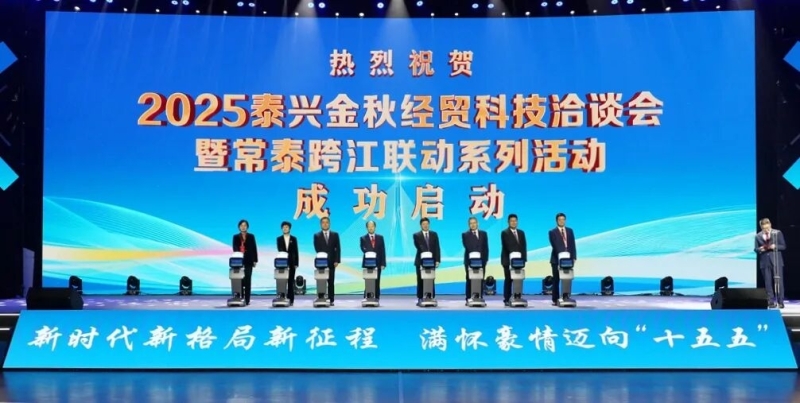 與會領(lǐng)導(dǎo)共同按鍵啟動2025泰興金秋經(jīng)貿(mào)科技洽談會暨常泰跨江聯(lián)動系列活動。 |