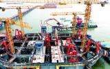(記者 周冰 通訊員 凌鴻茹)春節(jié)期間,在常泰長(zhǎng)江大橋5號(hào)墩沉井施工現(xiàn)場(chǎng),一臺(tái)臺(tái)混凝土攪拌車排成長(zhǎng)龍,通過(guò)傳送泵向五號(hào)墩輸送著混凝土。在墩沉井附近,幾艘浮吊船正?吭谂裕粩鄵]舞著手臂進(jìn)行作業(yè),[詳細(xì)]