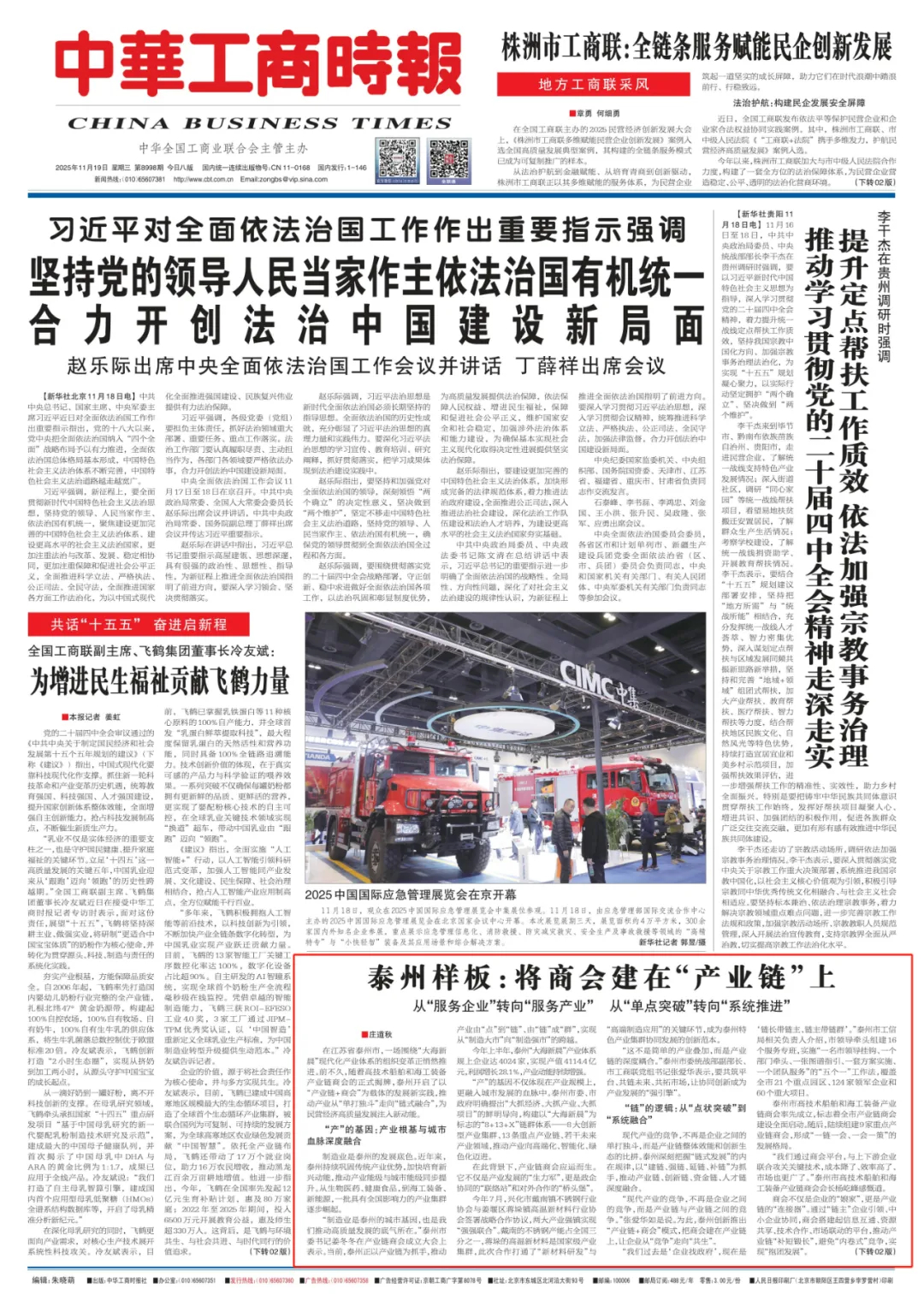 • 11月19日《中華工商時(shí)報(bào)》頭版關(guān)注泰州一場(chǎng)圍繞"大海新晨"現(xiàn)代化產(chǎn)業(yè)體系的組織變革正在這里悄然推進(jìn)泰州樣板:將商會(huì)建在產(chǎn)業(yè)鏈上從服務(wù)企業(yè)轉(zhuǎn)向服務(wù)產(chǎn)業(yè)從單點(diǎn)突破轉(zhuǎn)向系統(tǒng)推進(jìn)在江蘇省泰州市,一場(chǎng)圍繞"大海新晨"現(xiàn)代化產(chǎn)業(yè)體系的組織變革正[詳細(xì)]